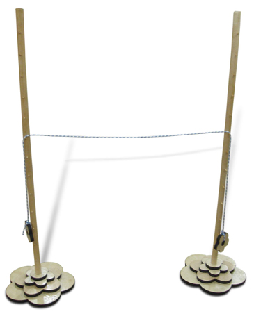Изготовлены из деревянных перекладин, обработаны лаком антисептиком. Перекладина - шнур (качели).