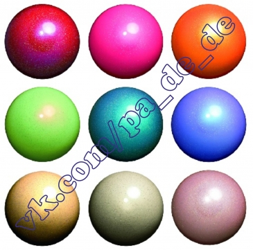 Мяч с блестками и глянцевой поверхностью, отлично преломляющей свет. Диаметр - 18,5 см. Одобрен FIG.