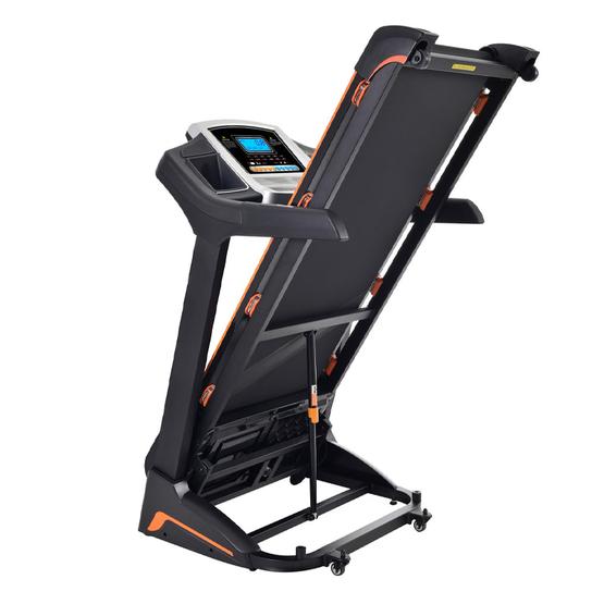 Рама выполнена из высокопрочной стали и содержит усиленные соединения, поэтому дорожка без проблем выдерживает нагрузку до 145 кг. При этом она довольно компактная и складывается за считанные секунды.