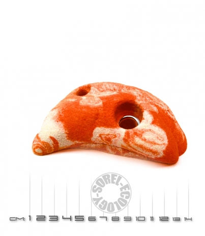 Крепление зацепов к поверхности скалодрома осуществляется при помощи болта М10 длиной от 30 до 70 мм с внутренним шестигранником, выполненного согласно DIN 912, (поставляется в комплекте с зацепом) и закрепленной на скалодроме врезной гайки М10х12,5, выполненной согласно DIN 1624, которая поставляется отдельно.