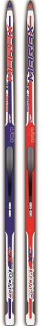 Лыжи представлены в одном дизайне и в двух цветах (красные и синие).