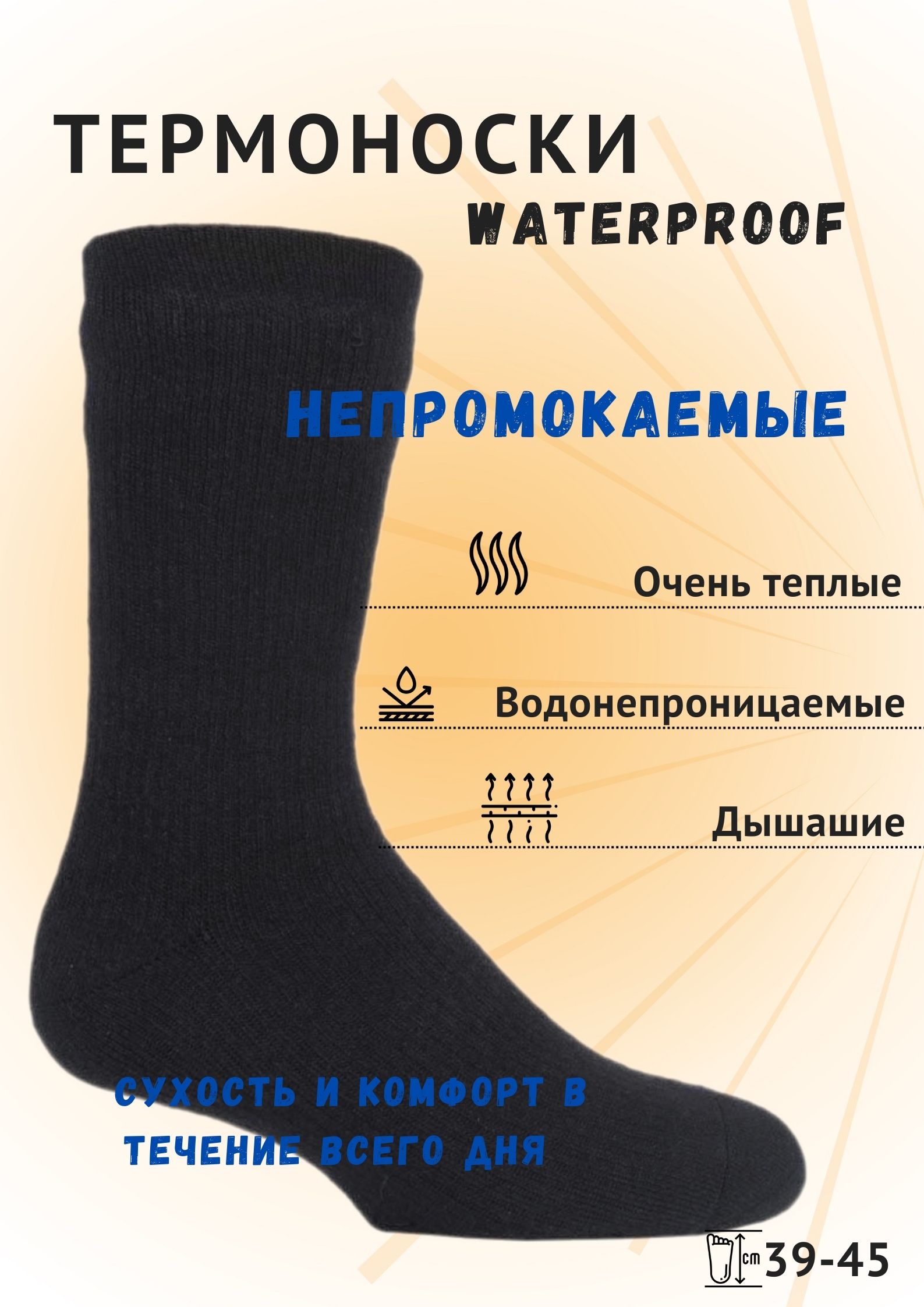 Мужские водонепроницаемые трехслойные термоноски Heat Holders! В модели Waterproof используется теплоизоляционная пряжа высшего качества. Мягкий начес с изнаночной стороны увеличивает воздушную прослойку между носком и ногой, обеспечивая тепло в холодные дни. Термо-пряжа отводит излишнюю влагу, обеспечивая сухость и комфорт в течение всего дня. Идеально подходят для активного отдыха, рыбалки, охоты и зимних видов спорта.