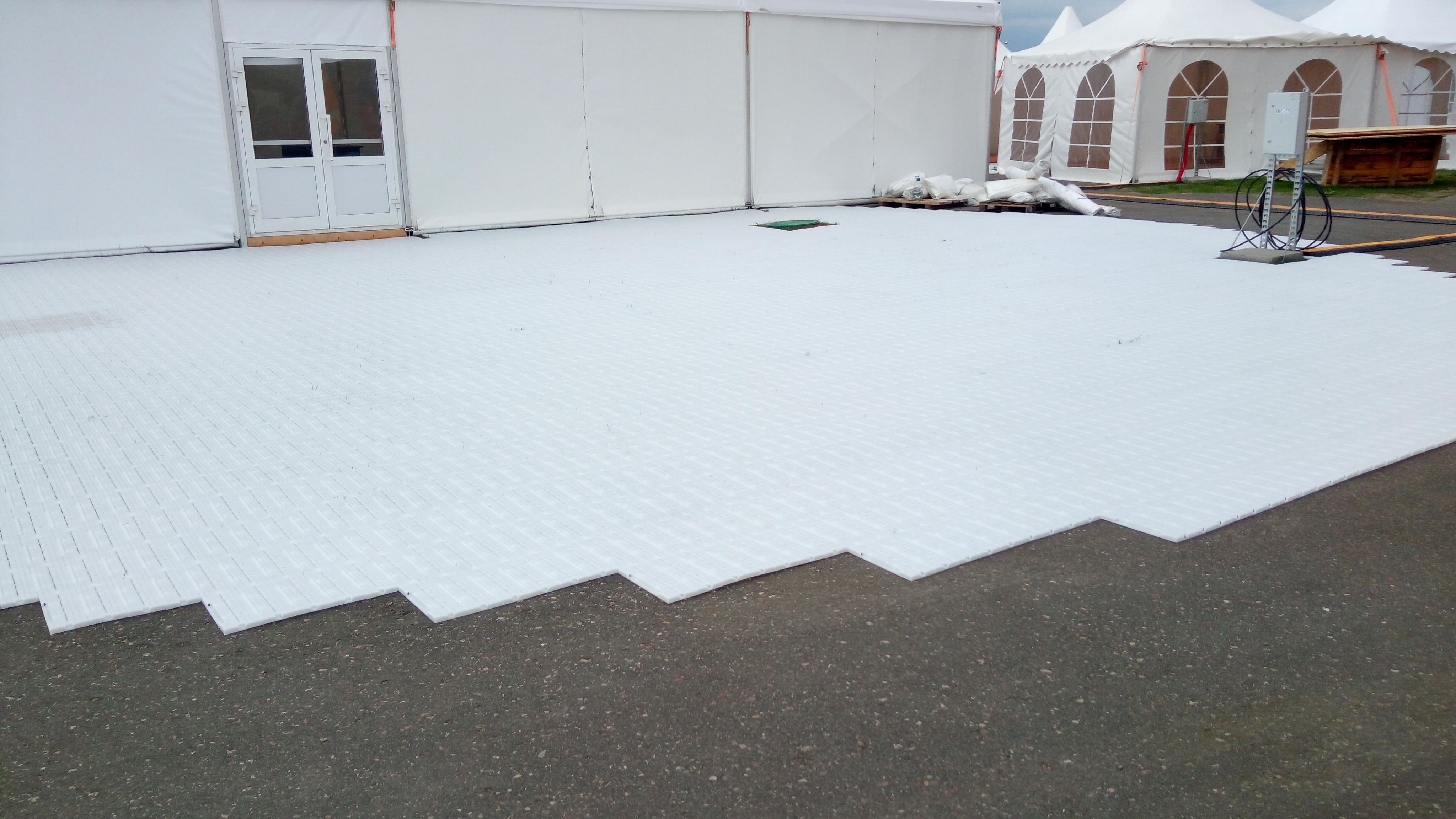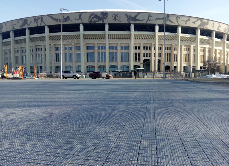 Покрытие предназначено для защиты натурального газона от вытаптывания и повреждений от установленных легких конструкций. Применяется для движения пешеходов и установки шатров, торгового оборудования. Максимальная нагрузка на твердом основании составляет 29 тонн на кв.м.