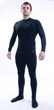 Характеристика изделий: джемпер приталенного кроя идеально облегает тело. Удлинённые рукава до середины ладони имеют отверстие для большого пальца. Воротник-стойка, защищает шею от холодного ветра. Кальсоны имеют среднюю высоту талии, садятся точно по фигуре и не сковывают движений. Технология изготовления термобелья предполагает плотное облегание тела без сборок и складок, швы не натирают кожу. Комплект выполнен из 100% полиэстерного полотна Trevira Bioactive, разработанного в Германии. Благодаря водоотталкивающим свойствам одежда не впитывает влагу, позволяя ей выходить наружу. За счет насыщения полимерных волокон ионами серебра Полотно имеет бактерицидную функцию. Термобельё является, прежде всего, нижним бельем, поэтому его необходимо надевать под одежду. Температурный режим до -30 градусов.