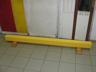 Бревно гимнастическое напольное на подставках для массовых гимнастических занятий в зале. Каркас выполнен из фанеры, прокладка из вспененного ППЭ, верхний чехол из винилискожи и тентовой ткани. Подставки-лапки из массива хвойных пород толщиной 40 мм, снизу прокладка из рифленой резины.