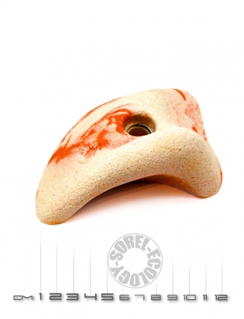 Крепление зацепов к поверхности скалодрома осуществляется при помощи болта М10 длиной от 30 до 70 мм с внутренним шестигранником, выполненного согласно DIN 912, (поставляется в комплекте с зацепом) и закрепленной на скалодроме врезной гайки М10х12,5, выполненной согласно DIN 1624, которая поставляется отдельно.