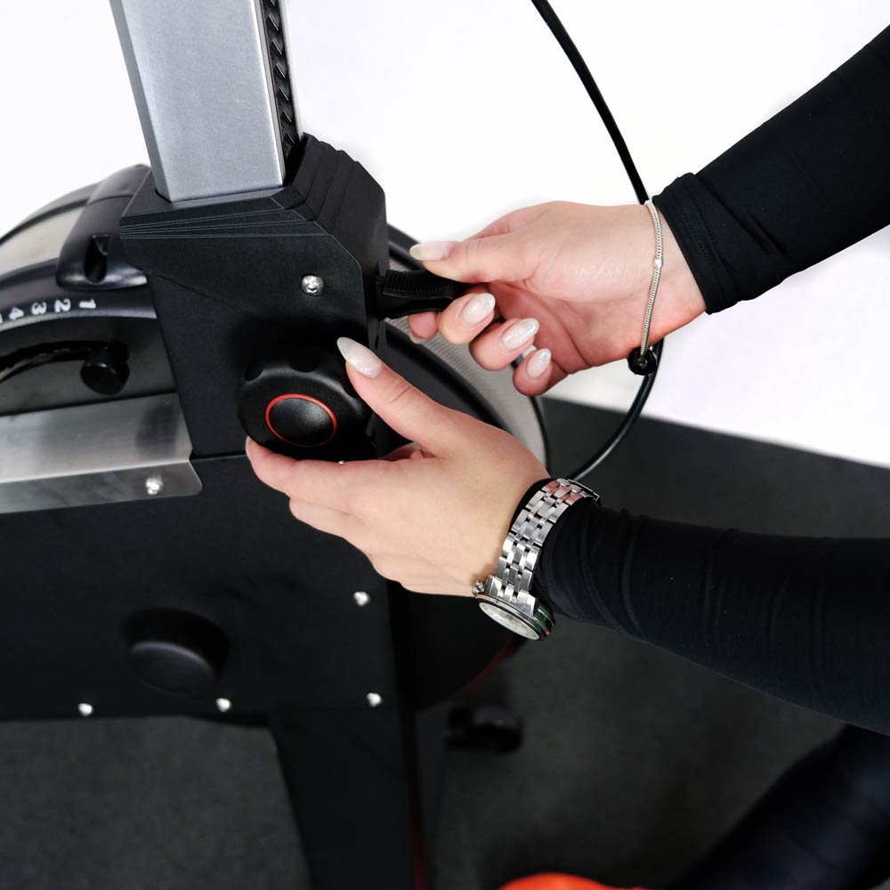 Xebex AMSB-03-BA – единственный байк с воздушным и магнитным сопротивлением, уровень демпфирования и магнитный уровень которого отображаются на консоли. Демпфер позволяет спортсмену регулировать количество воздушного потока на левой стороне маховика во время езды. А можно увеличить мощность, смоделировав наклон.