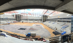 В настоящее время уже завершается монтаж систем дренажа и подпочвенной аэрации в теле поля, сразу после этого начнутся работы по монтажу систем подогрева и орошения.